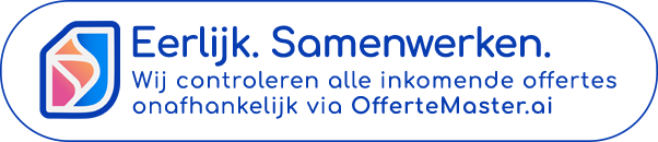 Maar OfferteMaster gaat verder dan alleen analyseren. Wij helpen organisaties structureel transparanter in te kopen – met aantoonbare preventieve werking richting leveranciers. Want met ons Eerlijk. Samenwerken. label op uw website en in uw communicatie zorgt u ervoor dat leveranciers offertes (preventief) beter en scherper zullen aanleveren.